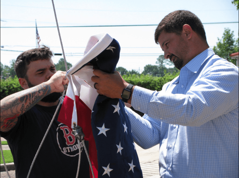 The ITI Veteran’s Student Chapter President William Hall retired the old American flag and hoisted the new one!