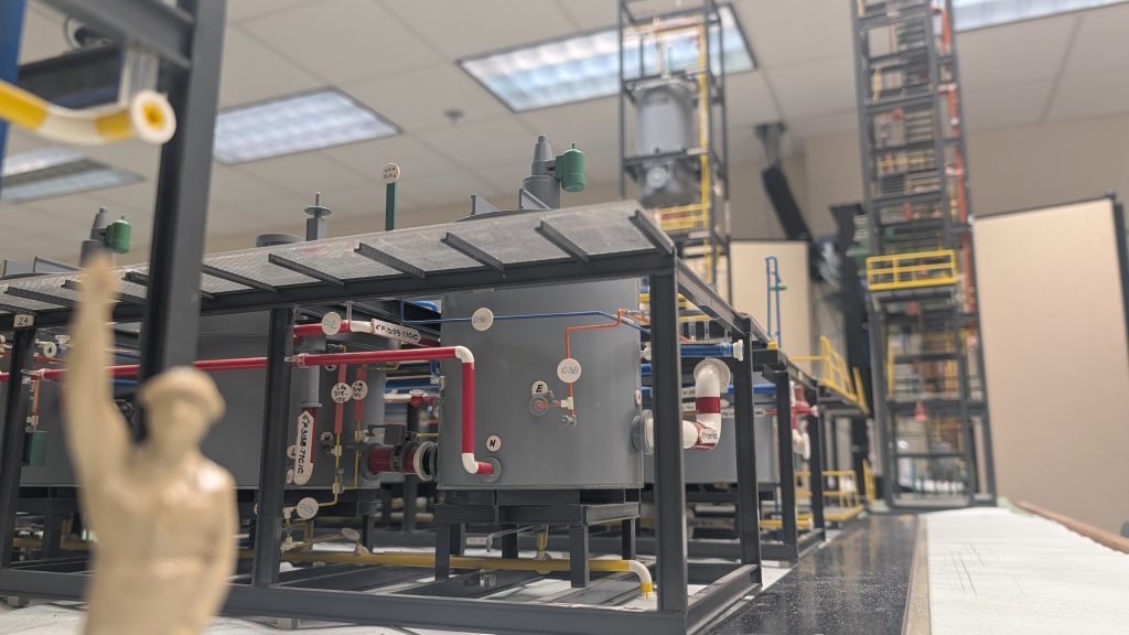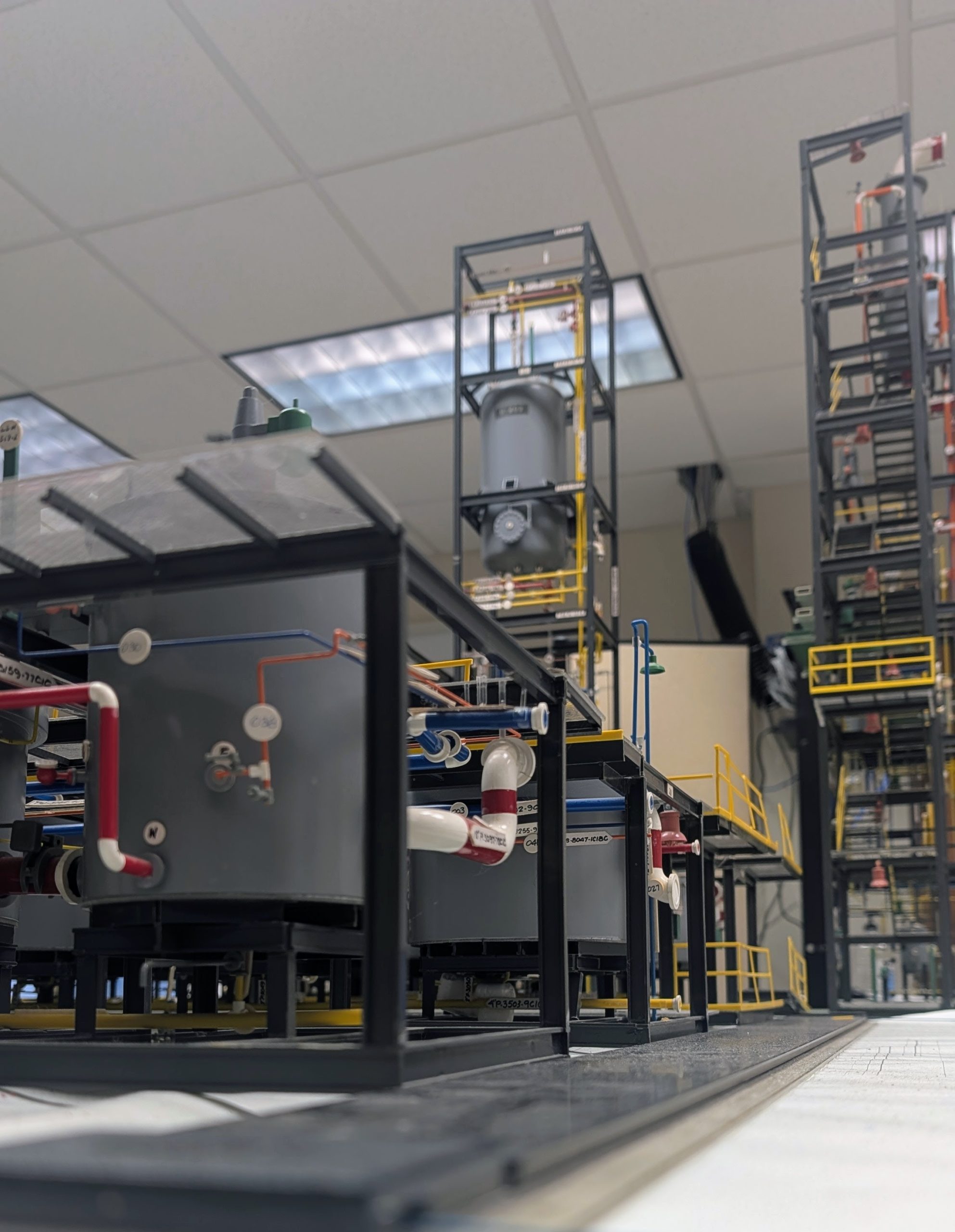 The process plant, an industrial distillation unit, provides ITI students an opportunity to train with working pneumatic, electronic, and electrical systems similar to what they will encounter in the workplace. A working instrument shop supervised by highly experienced instrumentation instructors simulates on-the-job training for students.
