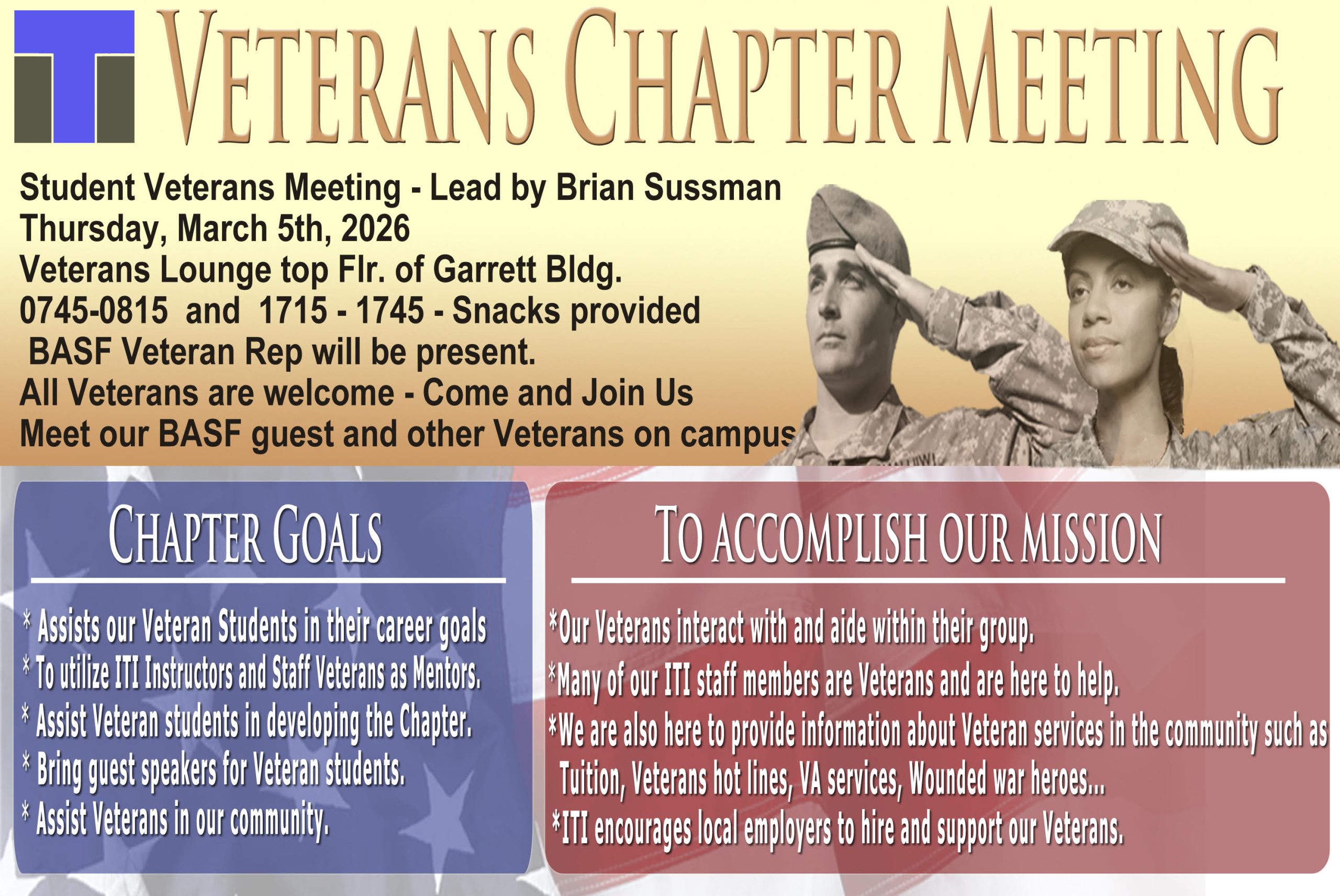 If you are a student at ITI Technical College, you have come to the right place! Here in our virtual Veteran’s Lounge, you will find helpful resources and information designed to help you enhance your educational experience!